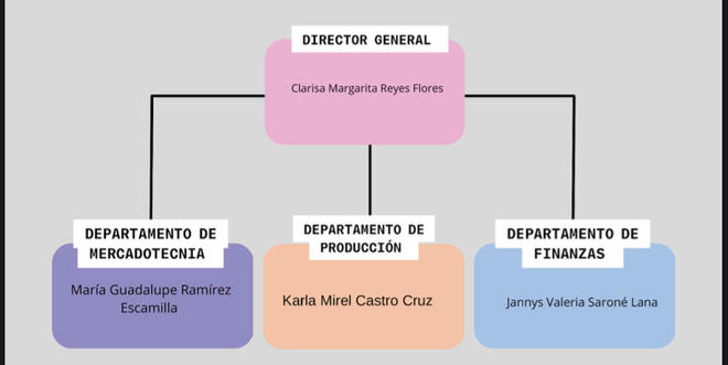 | La organización se basa en: | Un director general | Departamento de Mercadotecnia | Departamento de Producción | Departamento de Finanzas |